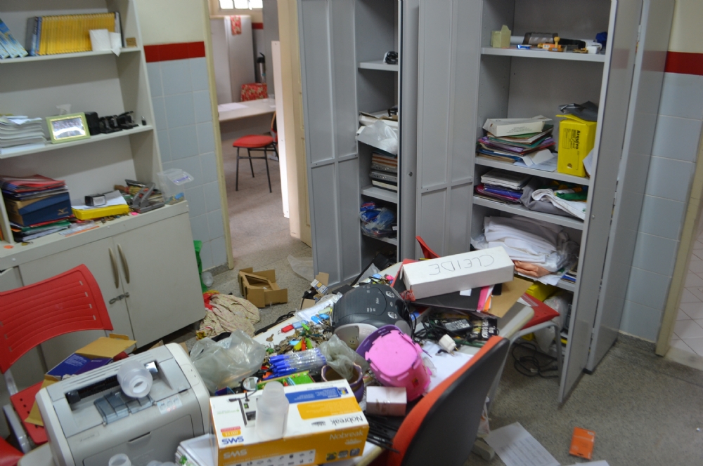 Ainda segundo Nadia, a janela de sua sala teve a grade forçada. Já na sala de informática uma janela foi quebrada, mas os bandidos não entraram. Ela acredita que eles voltarão. “A gente tem certeza que eles só quebraram o vidro da sala de informática para ver o que tem lá e depois voltarem. No almoxarifado eles entraram também por um buraco e fizeram bagunça”, relata.