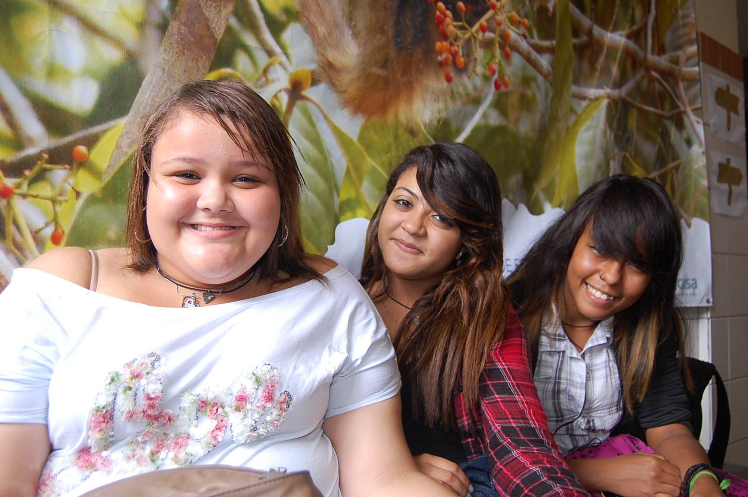 | Natalia e as amigas Mayara ( ao centro) e Thais |