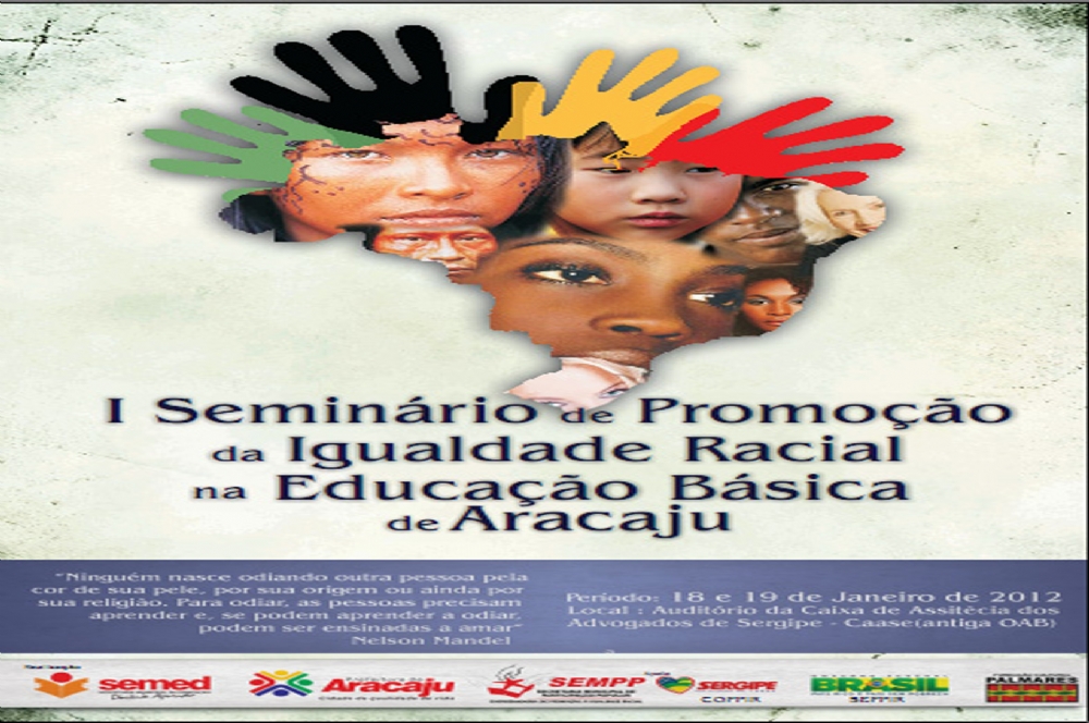 Terá início nesta quarta-feira, 18, no auditório da Caixa de Assistência dos Advogados de Sergipe – CAASE (antiga OAB), o 'I Seminário de Promoção da Igualdade Racial'. Promovido pela Prefeitura de Aracaju através da Secretaria Municipal de Educação (Semed), o evento destinado prioritariamente aos professores efetivos da rede municipal tem como objetivo principal promover um espaço de debate sobre ações de promoção racial na educação básica.