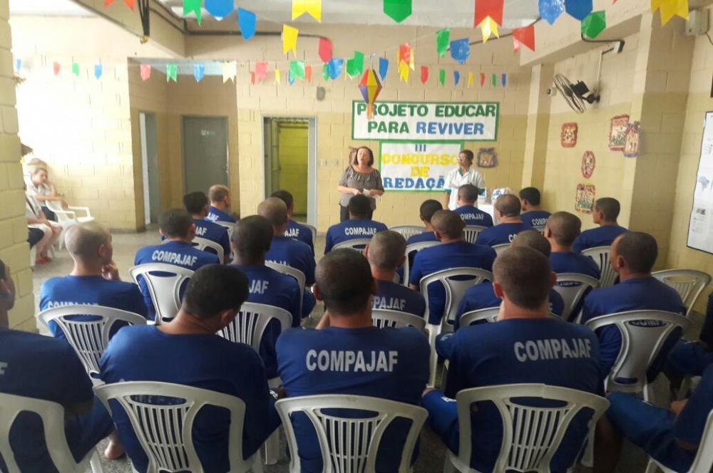 No Complexo Penitenciário Advogado Antônio Jacinto Filho (Compajaf) 28 internos participaram na tarde dessa segunda-feira, 26, do projeto Educar Para Reviver, realizado pela empresa Reviver que atua com cogestão com a Secretaria de Justiça e Defesa do Consumidor (Sejuc) na administração da penitenciária.