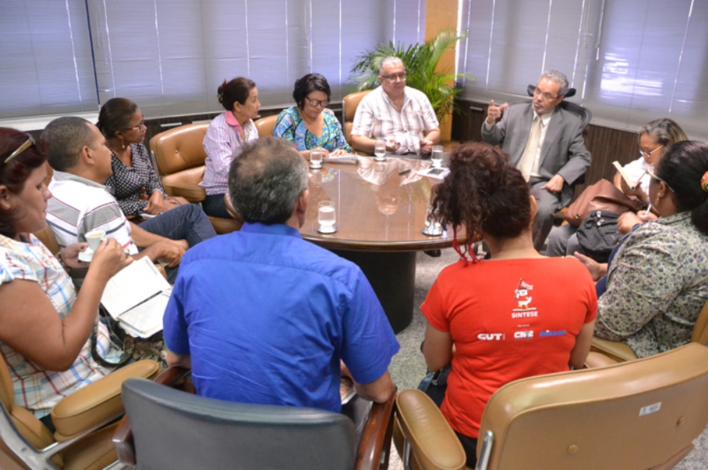 Representantes das sete subsedes do Sindicato dos Trabalhadores em Educação do Estado de Sergipe (Sintese), que compreendem todos os 74 municípios do interior, estiveram na última terça-feira, 02, no gabinete do conselheiro-presidente do Tribunal de Contas do Estado (TCE), Clóvis Barbosa de Melo, para acompanhar a atuação do órgão em relação às localidades que têm atrasado os salários dos professores.
