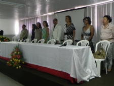 Momento do Hino Nacional (Fotos: Portal Infonet) A solenidade foi presidida pela secretária municipal de Educação, Tereza Cristina Cerqueira da Graça. Na ocasião, o novo presidente da Conmea afirmou que dará continuidade ao trabalho desenvolvido pela ex-presidente, Maria José Guimarães. “É a continuidade de um trabalho coletivo e transparente, enfocando os conselhos escolares, que têm poder consultivo de deliberativo”, ressalta Adelmo Menezes que também é o diretor de Recursos Humanos da Semed. Adelmo assina Termo de Posse Por meio do Consea, a sociedade tem assegurada a participação no acompanhamento da política educacional desenvolvida no município de Aracaju. Por Aldaci de Souza