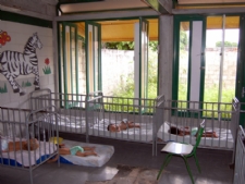 A porta de entrada da creche está quebrada e para segurá-la, os funcionários colocaram móveis velhos. A entrada no local é feita através de uma janela de uma sala ao lado. Os brinquedos do parque estão todos quebrados e o jardim está cheio de buracos de rato. Nas salas de aula e recreação, o piso está quebrado e os ventiladores foram roubados.