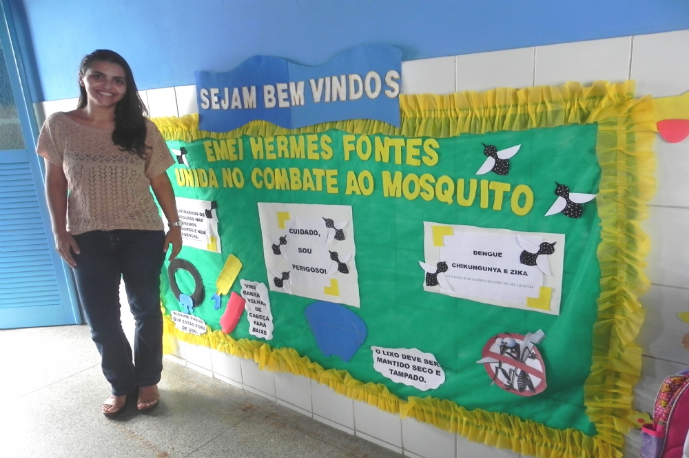 O combate ao mosquito Aedes aegypti, transmissor da dengue, febre Chikungunya e vírus Zika, está sendo tarefa desempenhada pelos alunos da Escola Municipal de Educação Infantil Hermes Fontes, localizada no bairro Palestina. Com idade entre 4 e 5 anos, eles assistiram, na manhã desta terça-feira, 29, a esquete teatral que traz a personagem Dona Zika, que flagra um catador descartando resíduos de forma incorreta.