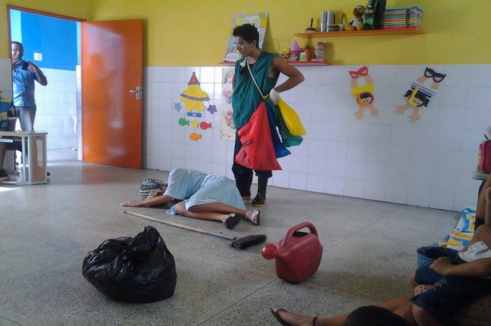A peça, encenada por atores da Secretaria Municipal do Meio Ambiente (Sema), informa como devem ser descartados os resíduos e aborda também assuntos relacionados à coleta seletiva. Ao conhecerem de perto a dona de casa que realiza o descarte do lixo de forma correta e orienta o catador sobre os riscos levados ao meio ambiente, as crianças se divertiram com a ação conscientizadora.