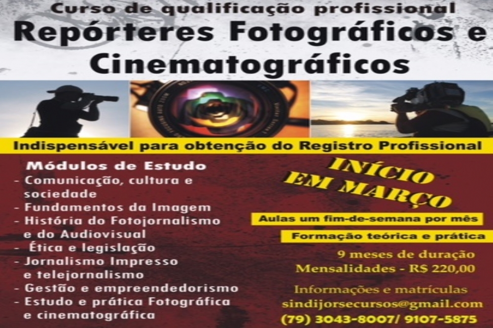 O Sindicato dos Jornalistas do Estado de Sergipe (Sindijor) está com inscrições abertas para a capacitação de profissionais e estudantes que desejam obter o registro profissional como Repórteres Fotográficos e Cinematográficos. Após uma experiência bem-sucedida no ano passado, o curso se prepara em 2015 para a formação da segunda turma de profissionais habilitados a trabalhar com fotografia e vídeo.