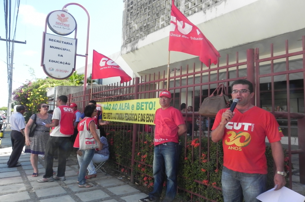 O início de 2014 foi marcado por protesto na capital sergipana. Na manhã desta quinta-feira, 2, membros da Central Única dos Trabalhadores (CUT) realizaram um ato em solidariedade a professora Maria Edileide Barrozo, que foi processada em dezembro do ano passado após ter se recusado a adotar o programa escolar de alfabetização – ‘Alfa e Beto’ – em sala de aula. A professora classificou o material didático de caráter preconceituoso e racista. Na manhã desta quinta-feira, 2, houve a segunda audiência do caso.