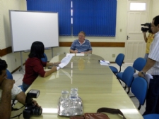 jornalistas fazem perguntas ao reitor do IFS