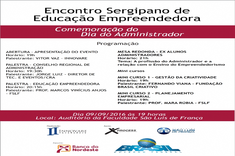 A Faculdade São Luis de França promove nesta sexta-feira, 9, a partir das 19h no auditório da instituição, o Encontro Sergipano de Educação Empreendedora.