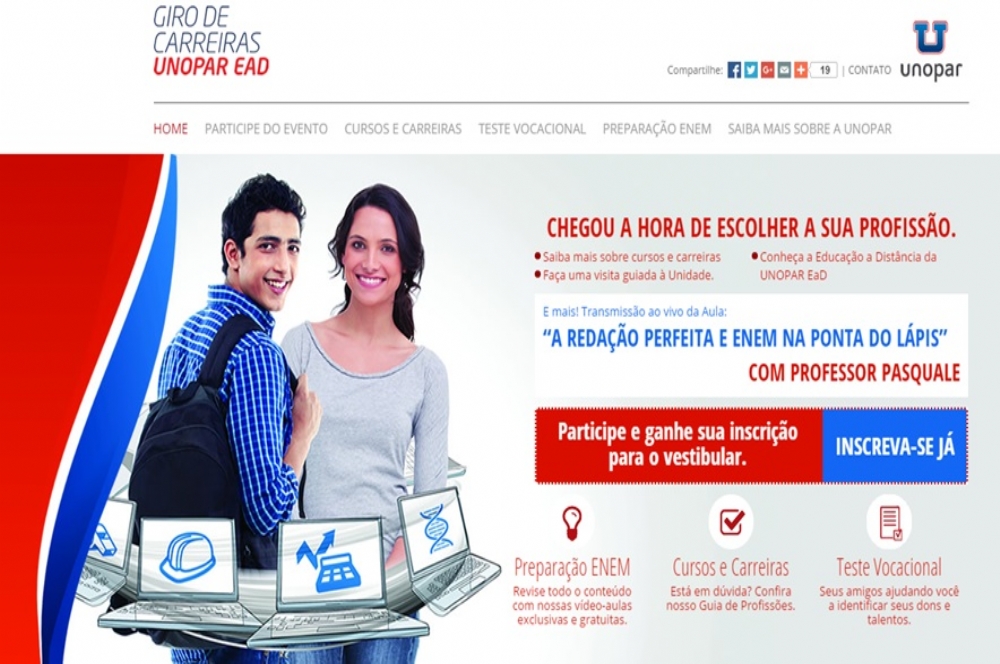 A Unopar EAD, maior universidade de ensino a distância do Brasil, vai reunir estudantes de todo o país no Giro de Carreiras, evento gratuito realizado no dia 8 de outubro em mais de 450 polos da Universidade. A programação é voltada para alunos do ensino médio das redes pública e privada e tem o propósito de auxiliar estudantes que vão fazer o ENEM e prestarão vestibular no final do ano.