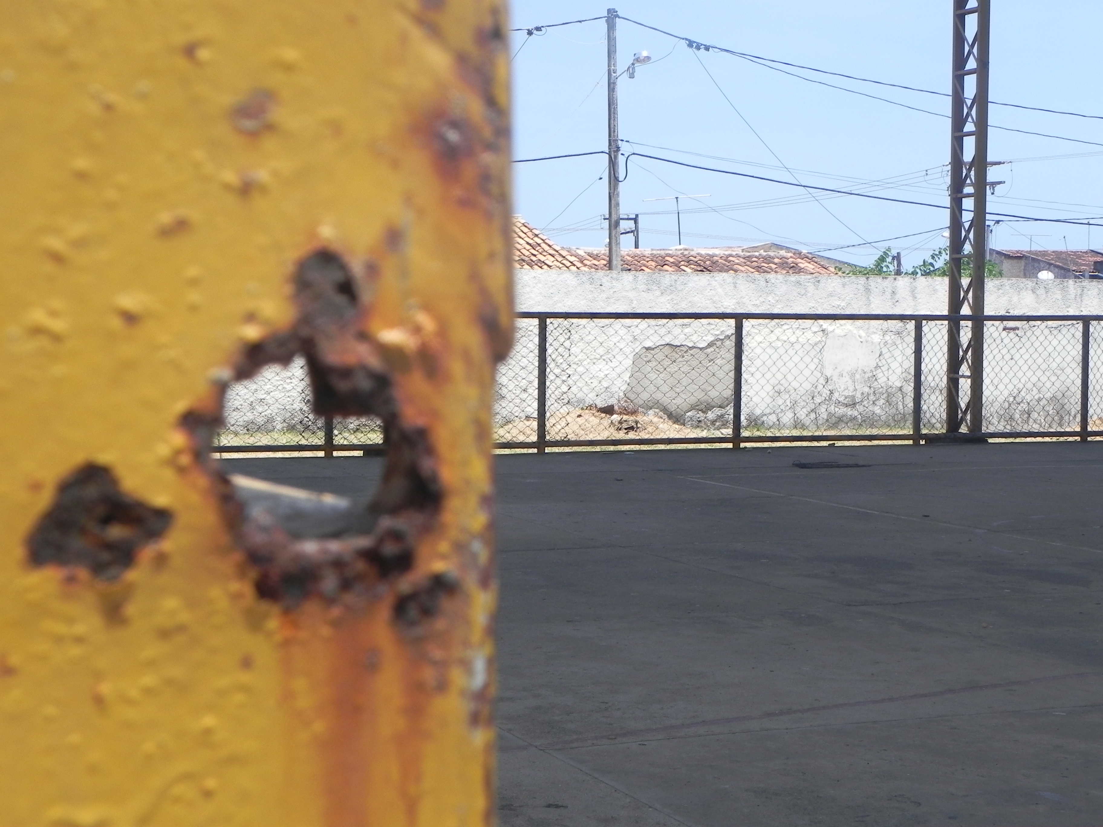 | Ferrugem dominam estrutura da quadra (Fotos: Cássia Santana / Portal Infonet) |