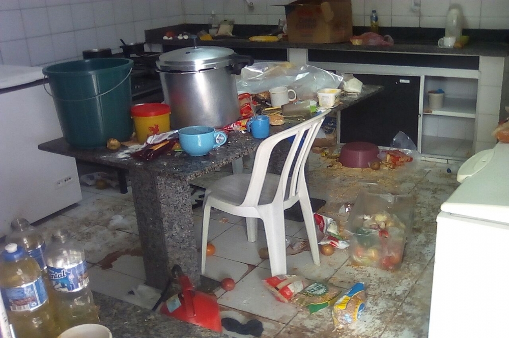 | De acordo com a secretária da escola, além de levarem a merenda, os assaltantes espalharam alimentos por toda parte (Foto: Cedida por Carmem Silvia Pedroza) |