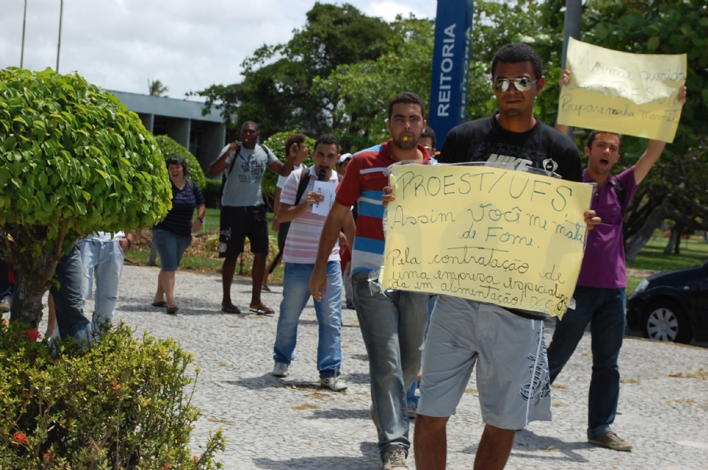 O Diretório Central dos Estudantes (DCE) da Universidade Federal de Sergipe (UFS) realizou manifestação no final da manhã desta quinta-feira, 18, em frente ao prédio da reitoria para protestar contra a interrupção das refeições no Restaurante Universitário (Resun).