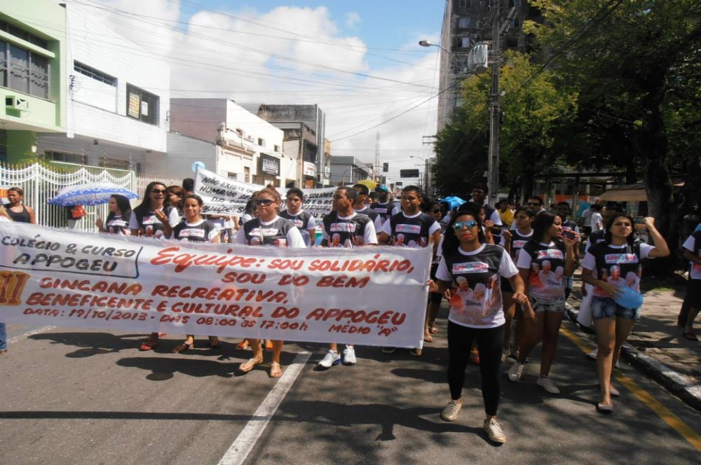 Com o tema ‘Diversidade humana’, alunos alertam para consciência de cidadania durante Gincana Cultural do Colégio Appogeu, que começou hoje e vai até o próximo sábado, 19. Através da passeata os alunos ressaltam temas como a igualdade entre os homens, sendo eles idosos, negros, índios ou deficientes. Apresentações de dança e teatro dos estudantes também integram a programação.