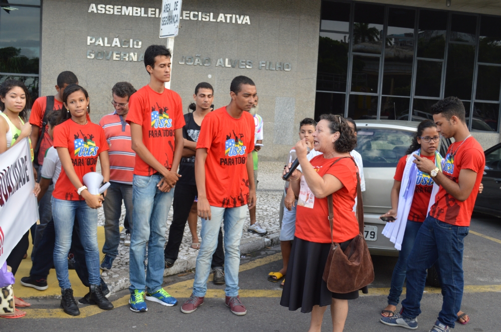 Integrantes da União Sergipana dos Estudantes Secundaristas (USES), realizou na tarde desta quarta-feira, 3, uma caminhada saindo da esquina do Calçadão da rua São Cristóvão pela Avenida Ivo do Prado até a Praça Fausto Cardoso, aonde aconteceu um ato na porta da Assembleia Legislativa de Sergipe. O objetivo dos alunos foi reivindicar que o Governo do Estado dialogue com os professores em greve desde o último dia 18, para que os cerca de 170 mil alunos possam retornar às salas de aula.