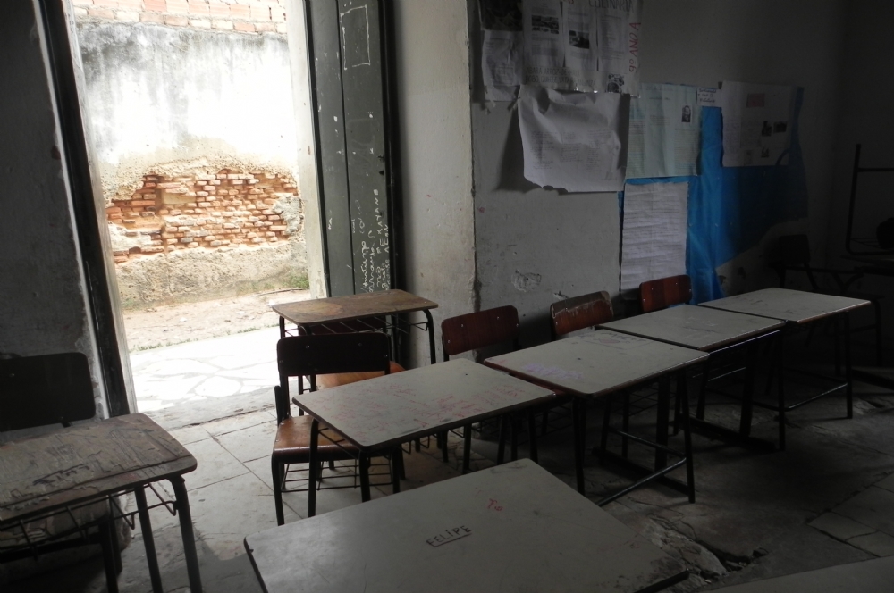 Uma área nos fundos do casarão, cheia de mato e de carteiras quebradas entulhadas, é o único espaço oferecido aos alunos como área de lazer. “Imagine o ânimo dos meninos num ambiente desses. Além de ficarem em salas de aula enfrentando calor, não têm água para beber e o lanche é precário”, informa uma funcionária da escola que também pediu para não ser identificada.