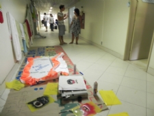 Nos acampamentos espalhados entre o corredor, o gabinete da reitoria e a sala da Ascom, os estudantes se revezam e até tentam conquistar a simpatia dos professores, convidando-os a ministrar aula no corredor da reitoria. Aulas mesmo eles não conseguiram, mas o cenário também serve como palco de debates e de exibição de filmes. “Tudo que a gente precisa no Curso de Comunicação está aqui na Assessoria de Comunicação e nós estamos usando estes equipamentos para confeccionar o nosso jornal. É o paradoxo da precarização”, conceitua o estudante Pedro Alves.
