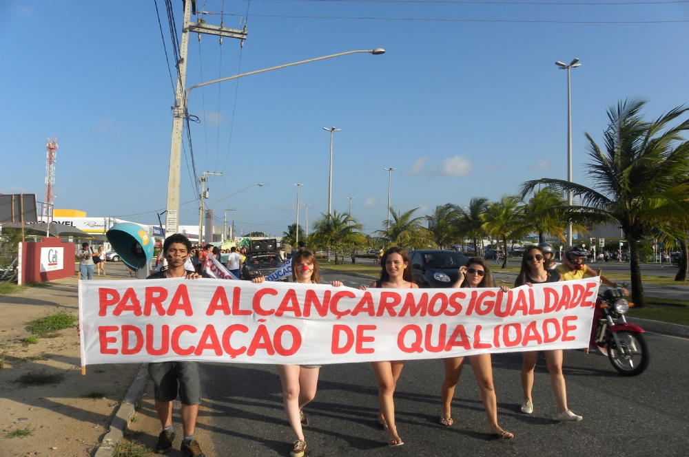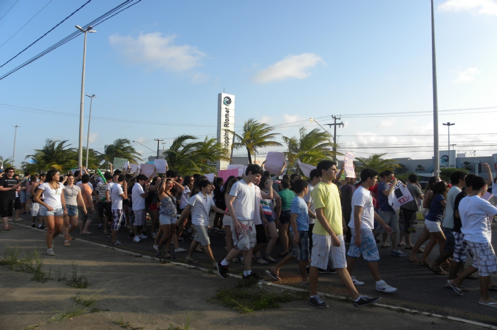 Com apitos, cartazes e caras pintadas os estudantes partiram do Shopping Riomar ao Shopping Jardins. Para a estudante do 3° ano, Annabel Silveira, a igualdade entre estudantes de escola pública e particular só acontecerá com uma educação de qualidade. “ As cotas é uma forma de mascarar a falta de educação de qualidade e não vai resolver o problema da educação”, afirma.