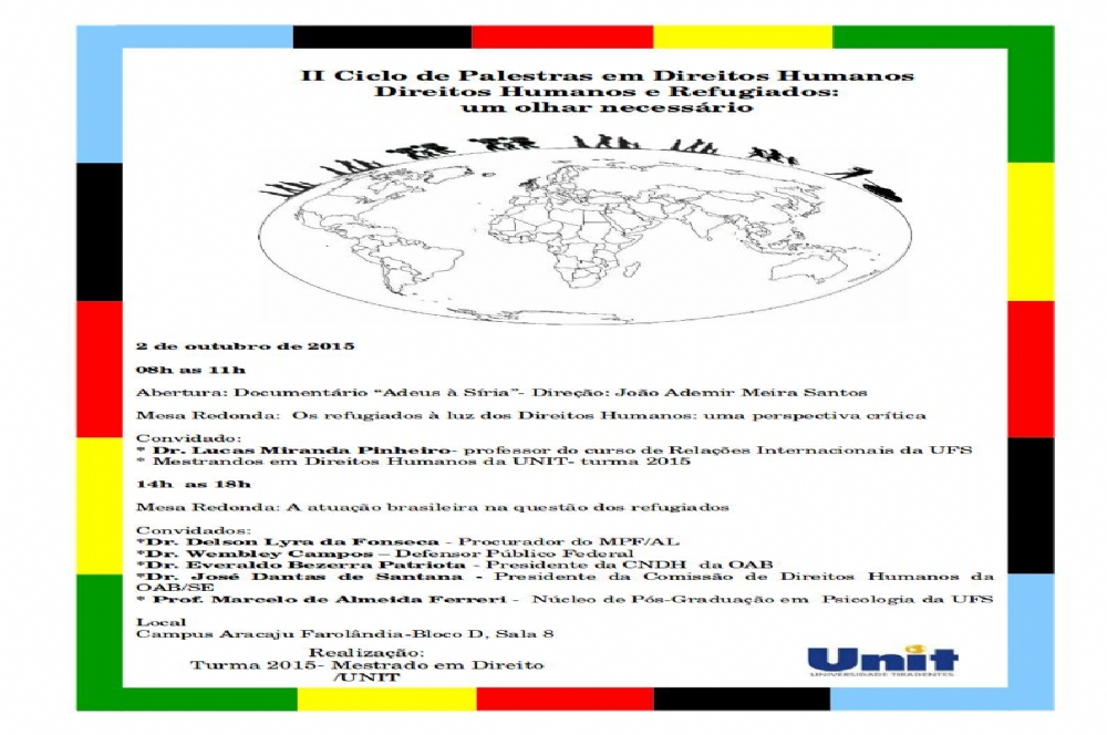 O evento é uma realização de estudantes do Mestrado em Direito/UNIT e tem como proposta promover um debate crítico sobre a contribuição do governo brasileiro para garantir os direitos humanos dos refugiados no país.