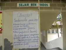 assim, hoje ela deveria entrar de tênis, já que ia comprar”, explica Noelice Nery. Cartaz dando conta da exigência do fardamento (fotos: Portal Infonet)