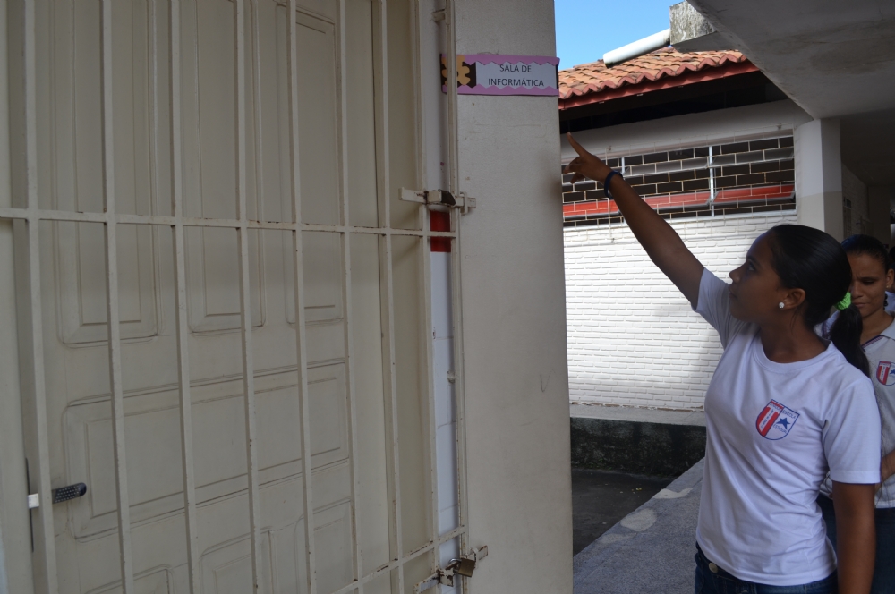 A estudante denuncia ainda que as aulas de informática não estão ocorrendo na escola. “Temos uma sala de informática onde todos os computadores funcionam, mas nenhum é disponibilizado para a gente. A sala está fechada, e queremos aula de informática”, desabafa.