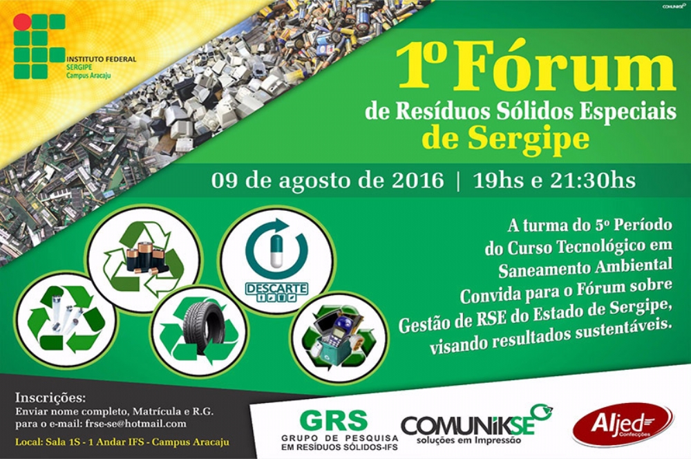 No dia 9 de agosto, especialistas estarão debatendo essa problemática no I Fórum de Resíduos Sólidos Especiais, que está sendo organizado pelos estudantes do Curso Superior de Tecnologia em Saneamento Ambiental do Instituto Federal de Sergipe – Campus Aracaju, atividade da disciplina de Tópicos Especiais em Saneamento, ministrada pela professora Kelma Nobre Vitorino.