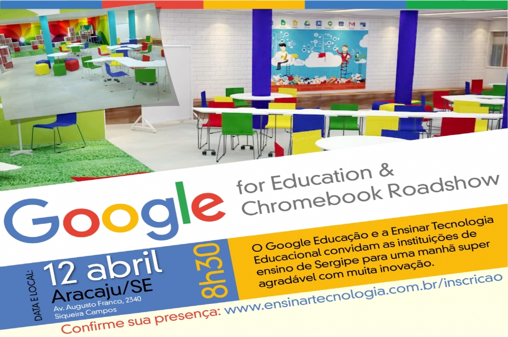 A Faculdade Maurício de Nassau, em Aracaju, será palco de um encontro promovido pelo Google for Education e pela Ensinar Tecnologia, no dia 12 de abril. Na ocasião, será realizado um road show gratuito voltado para dirigentes de escolas do ensino médio. A expectativa é que o encontro reúna 140 participantes.
