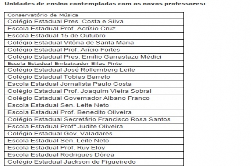 O Governo do Estado de Sergipe, dando continuidade à sua política de aperfeiçoamento da estrutura de ensino e ampliação de vagas, cria novas oportunidades de empregos para os professores que saem das universidades. Foram convocados mais 41 professores aprovados no último concurso do Magistério, realizado em 2012 pela Secretaria de Estado do Planejamento, Orçamento e Gestão (Seplag), juntamente com a Secretaria de Estado da Educação (Seed).