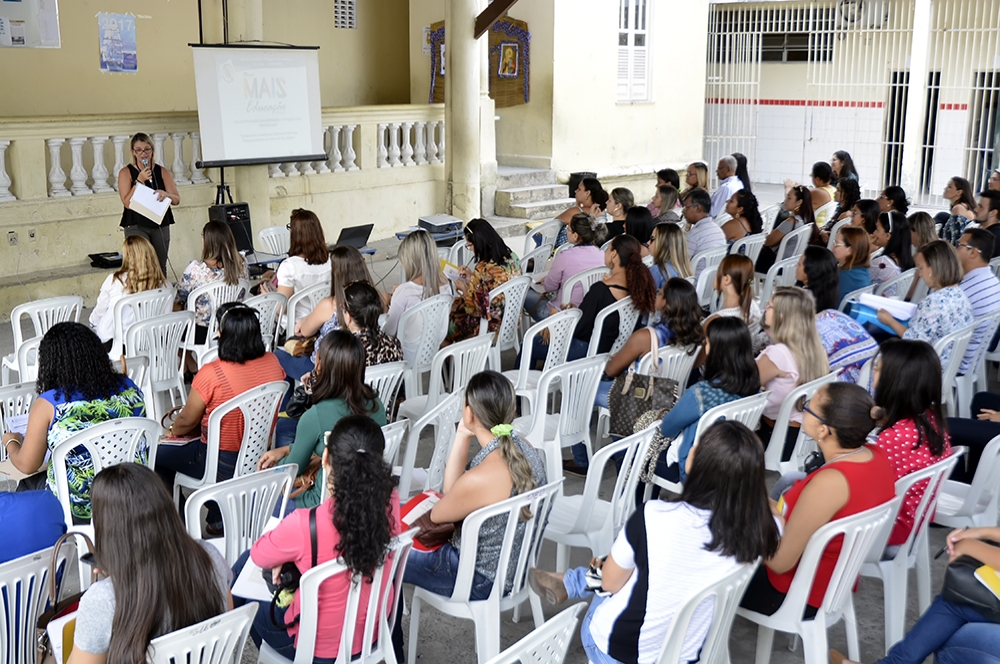 A programação do evento contou com uma parte teórica, na qual foram ministradas duas palestras sobre planejamento de ações e resultados educacionais, e uma parte prática, com a realização de oficinas de Língua Portuguesa e de Matemática.