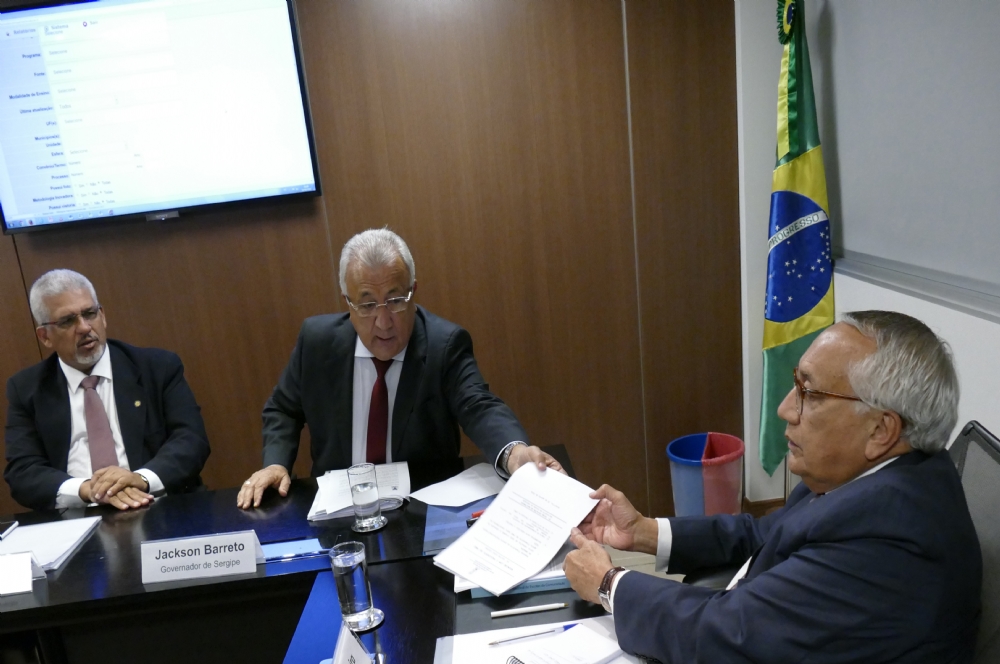 O governador Jackson Barreto esteve reunido em Brasília com o presidente do Fundo Nacional de Desenvolvimento da Educação (FNDE), Gastão Vieira, e membros da sua equipe, na tarde desta quarta-feira, dia 10, para solicitar recursos para o término da construção do Centro Profissionalizante de Umbaúba. Pactuada por meio de convênio no montante de R$ 5.318.865,37, a obra está com 60% executado.
