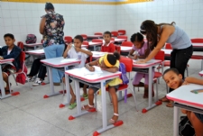 | Na Escola Letícia Soares apenas estagiários em sala de aula (Fotos: Portal Infonet) |