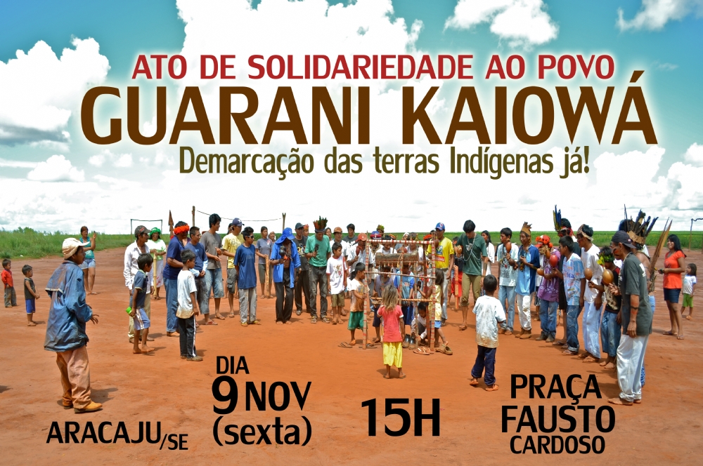 Em virtude dos diversos ataques, assassinatos e ordens de despejo contra o povo Guarani Kaiowá no território do Mato Grosso do Sul, militantes e ativistas estão organizando neste sexta, 9, atos de solidariedade em diversas cidades do país. Mais de 15 cidades já estão confirmadas e em Aracaju o ato acontecerá às 15h na praça Fausto Cardoso.