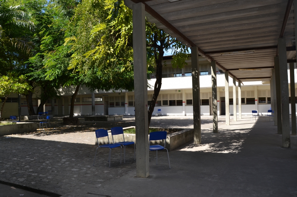 | Pátio onde assaltante teve acesso para aterrorizar comunidade escolar |