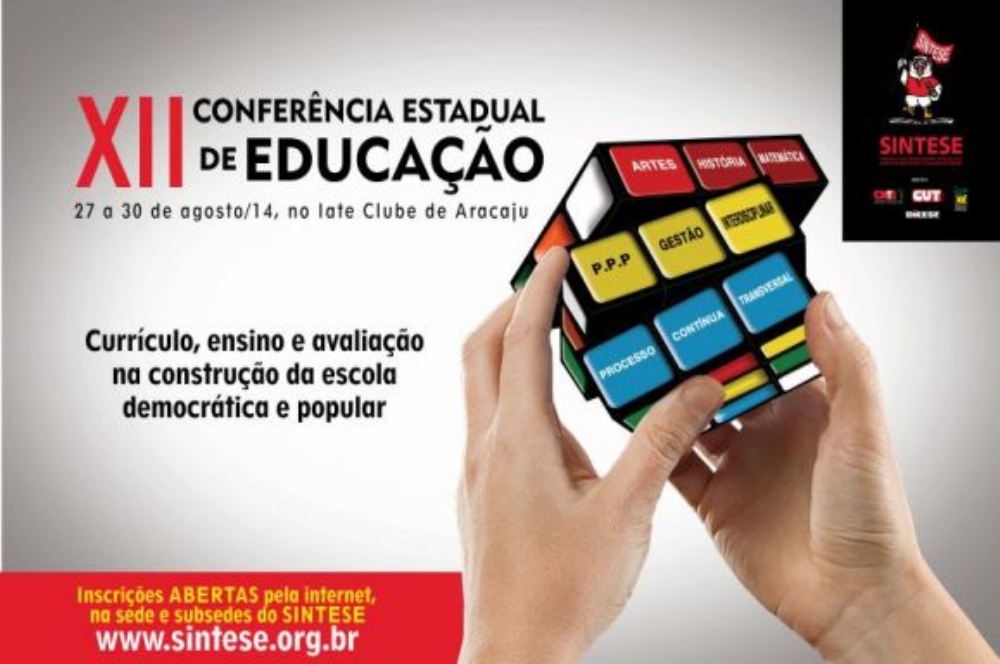 De 27 a 30 de agosto acontece no Iate Clube, em Aracaju, a XII Conferência Estadual de Educação, organizada pelo Sintese. Com o tema "Currículo, ensino e avaliação na construção da escola democrática e popular", a Conferência será um espaço em que professores filiados ao Sintese e estudantes de licenciatura poderão trocar experiências e debater sobre os rumos da educação em Sergipe e no Brasil.