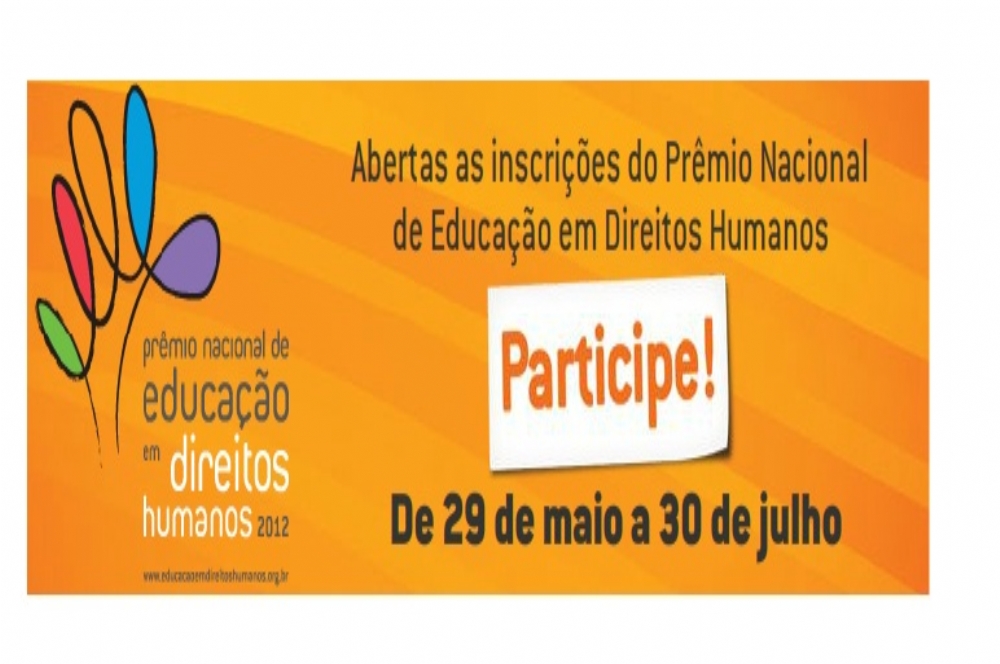 As inscrições para a 3ª edição do Prêmio Nacional de Educação em Direitos Humanos 2012 terminam no dia 30 deste mês. O prêmio visa identificar e valorizar "experiências educacionais significativas para a promoção de uma cultura de direitos humanos, envolvendo o conhecimento e a defesa dos direitos fundamentais, atividades de respeito às diversidades e de práticas democráticas no ambiente educacional".