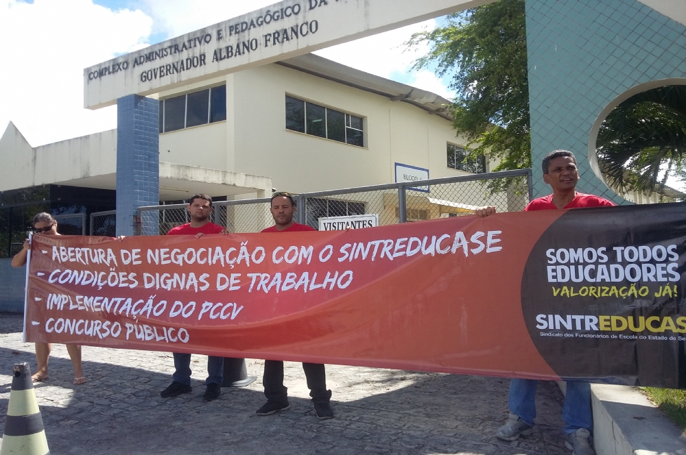 Os servidores da Secretaria de Estado da Educação (SEED) realizaram nova manifestação na porta da secretaria tentando convencer o Governo a reconhecer a legitimidade do Sindicato dos Funcionários de Escola do Estado de Sergipe (Sintreducase) para negociar as reivindicações da categoria que atua na rede estadual de ensino.