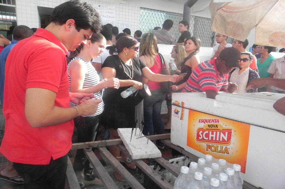 Por conta do edital que determina a utilização de caneta de tinta preta, comerciantes aproveitaram para vender o produto para os candidatos. Quem esqueceu pagou pela caneta que sairia normalmente por R$0,50, o valor de R$ 2.