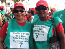 De Brejo Grande veio Maria José, professora que viajou 142 km com os colegas para lutar por uma remuneração mais justa. “Quero ganhar mais, quero receber o que me é de direito há muito tempo”, diz. As amigas Deglares Argolo e Laura Maria vieram de mais perto, de Nossa Senhora do Socorro, mas mantêm a mesma opinião.