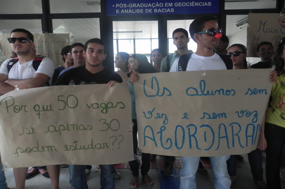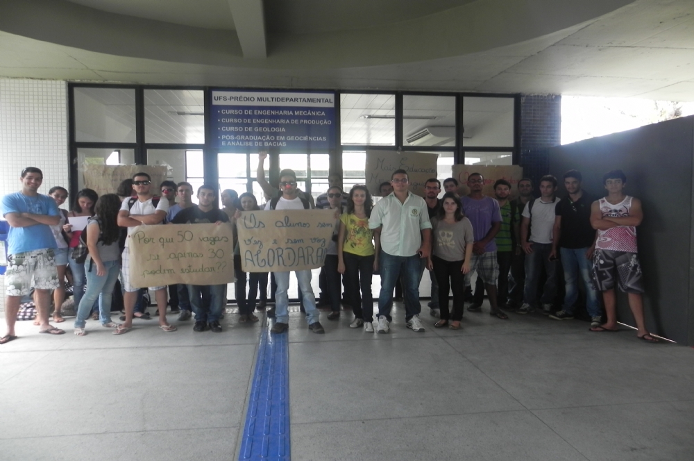Estudantes do curso de Geologia da Universidade Federal de Sergipe (UFS) realizaram na manhã desta terça-feira, 29, uma manifestação no prédio do departamento. Os alunos alegam que estão sendo prejudicados com a falta de professores e a oferta de disciplinas. Com cartazes, e gritando palavras de ordem, os alunos reclamara da redução da oferta de matrículas de 50 para 30 vagas em algumas disciplinas obrigatórias e anuais do curso.