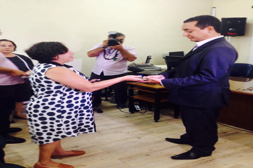 | Procurador do MPF recebe algemas da presidente do Sintese, Angela Melo (Foto: Portal Infonet) |