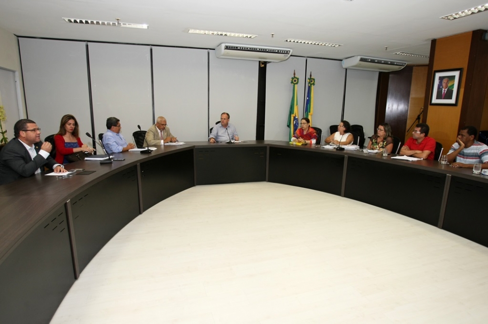 Os secretários de Estado da Educação, Jorge Carvalho, e da Fazenda, Jeferson Passos, e a superintendente executiva da Secretaria de Estado do Planejamento, Orçamento e Gestão, Lucivanda Nunes, também participaram da reunião.