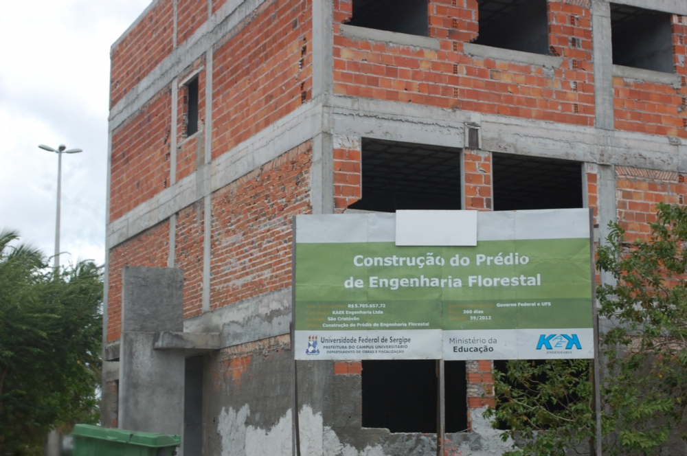 Das mais de dez obras iniciadas na Universidade Federal de Sergipe, apenas três estão em andamento: a construção dos prédios dos Departamentos de Computação, de Engenharia Civil e de Zootecnia.