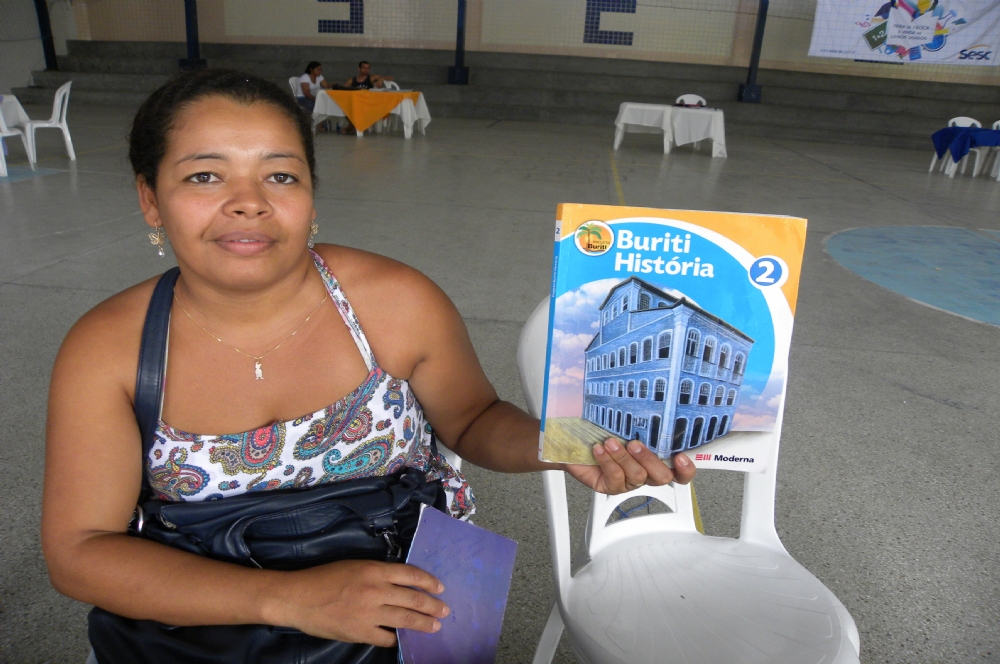Clarice Vitoriano dos Santos levou toda a família para a feira de livros e usados. Segundo ela, vale a pena economizar. “Acho uma economia muito grande. Compramos um livro da 7ª serie aqui por R$ 35 reais, só que me disseram que esse mesmo livro custa R$ 100 reais”, conta.