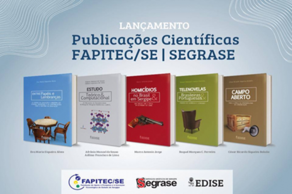 Nesta sexta-feira, 22, acontecerá o lançamento de cinco livros de pesquisadores sergipanos. A publicação da coleção é fruto da parceria entre a Fundação de Apoio à Pesquisa e à Inovação Tecnológica do Estado de Sergipe (Fapitec/SE) e a Editora do Diário oficial de Sergipe – Edise, orgão suplementar da Empresa de Serviços Gráficos de Sergipe – Segrase. O evento acontecerá no Museu da Gente Sergipana Governador Marcelo Déda, às 17h30, em Aracaju.