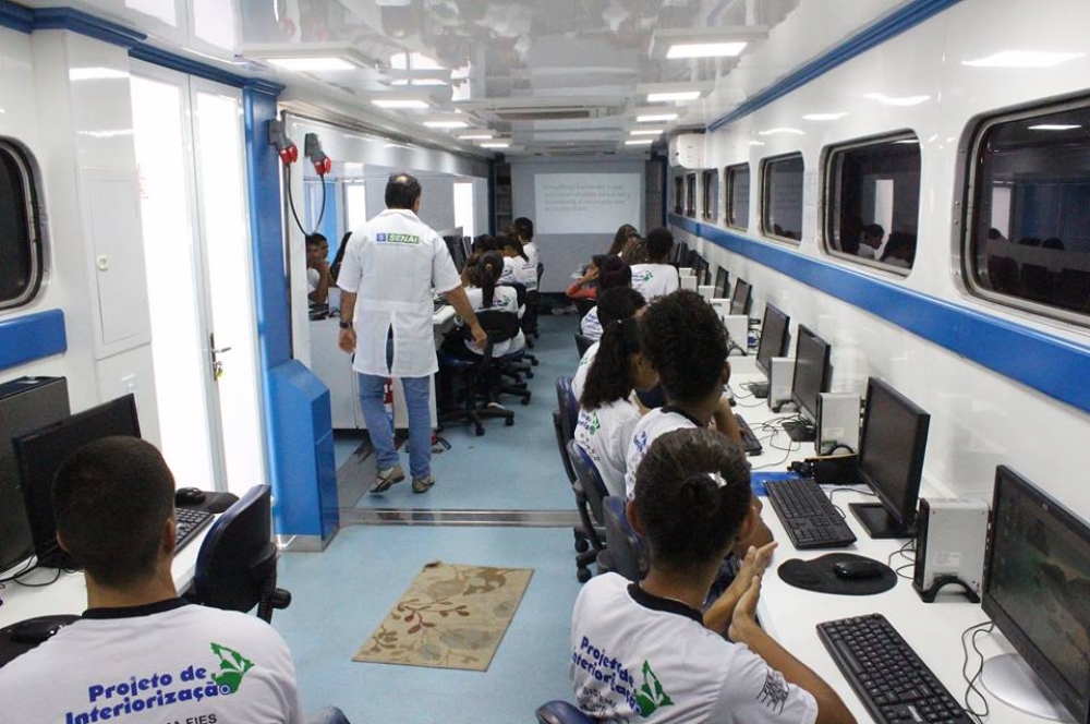 O curso com duração de 2 meses tem carga horária de 160 horas, divididas entre aulas teóricas e práticas realizadas em uma Unidade Móvel, que recebe 28 alunos no turno da manhã e 28 alunos no turno da tarde.