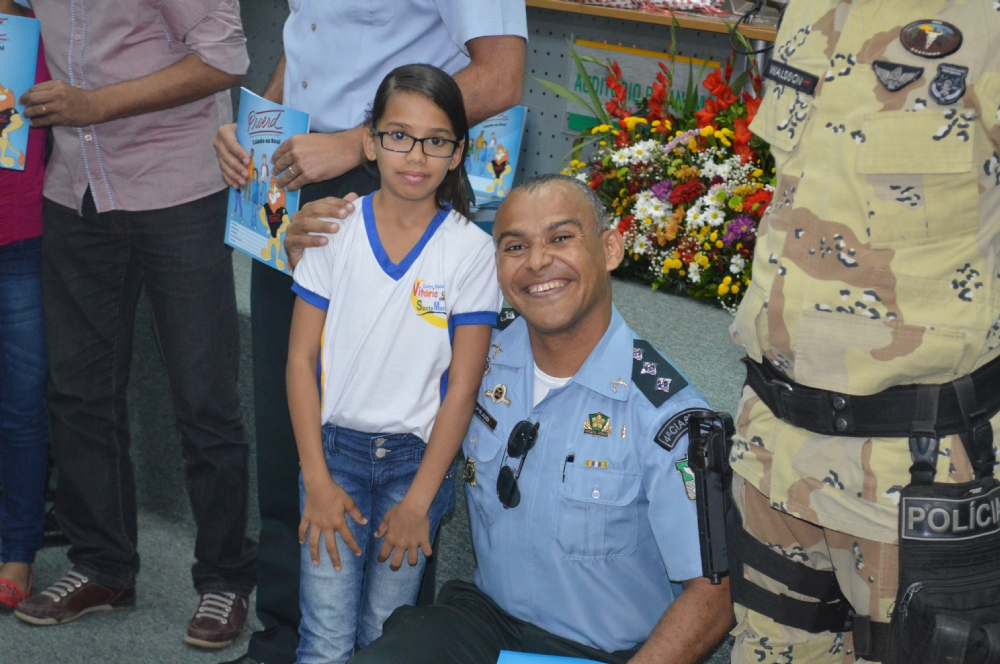 | Alunos abraçam policiais durante lançamento do livro (Fotos: Portal Infonet) |