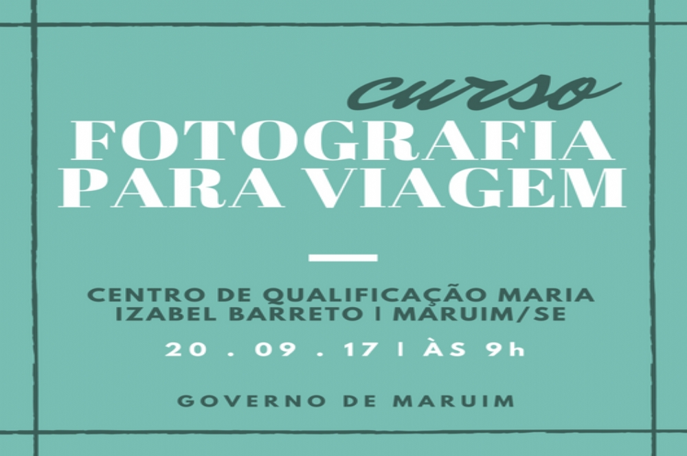 A Prefeitura de Maruim, através da Assessoria de Comunicação Social, promove curso de composição fotográfica para viagem. O curso gratuito será realizado no dia 20 de setembro, às 9h, no Centro de Qualificação Maria Izabel Barreto, em Maruim/SE.