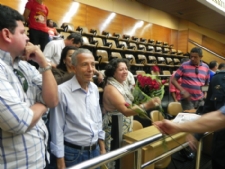 Após o resultado de aprovação do projeto do Governo concedendo o reajuste salarial do Magistério e do Piso Salarial Profissional Nacional (PSPN), a presidente do Sindicato dos Trabalhadores em Educação do Estado de Sergipe (Sintese), Ângela Melo entregou botões de rosas aos servidores da Assembléia Legislativa, aos policiais militares e à imprensa.