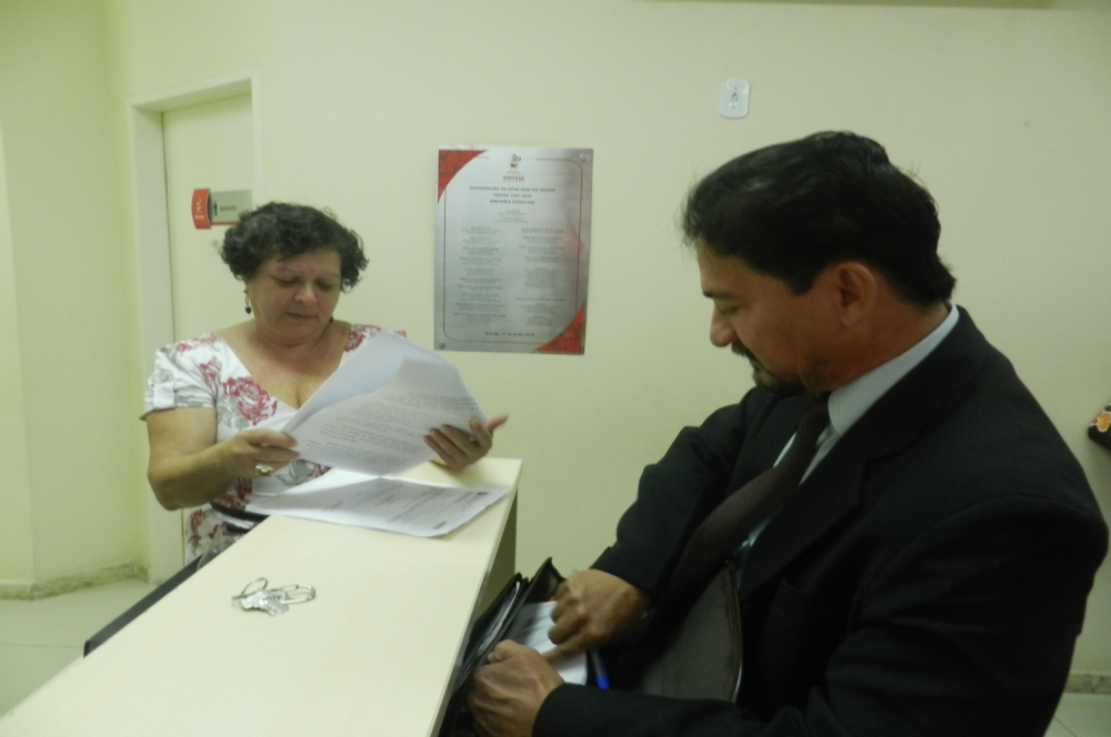 O oficial do Tribunal Pleno Ginaldo Reis chegou cedo à sede do Sintese à rua Campos, com a notificação da ilegalidade da greve dos professores. “Semana passada eu estive aqui, mas nem a presidente, nem a vice, estavam para assinar os documentos. Com isso, marquei para às 8h30 desta segunda-feira, 11”, destaca.