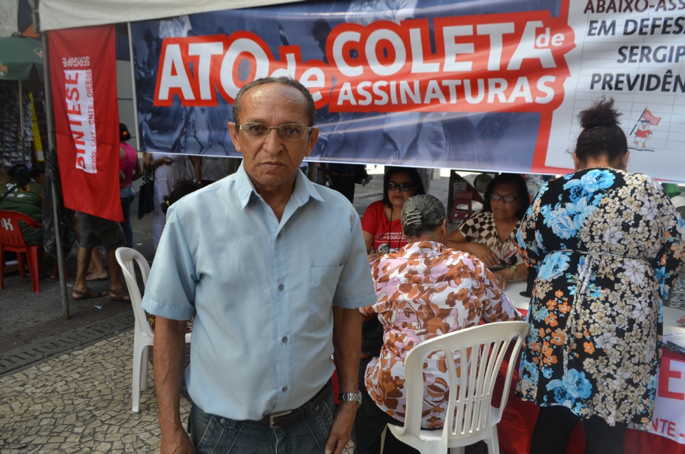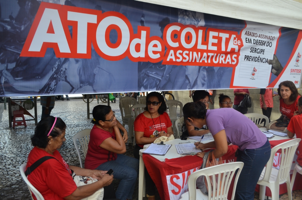Professores aposentados realizaram na manhã desta quinta-feira, 24, mais um ato, no Calçadão da João Pessoa, Centro da capital sergipana. Desta vez, a categoria recolhe assinaturas para o abaixo-assinado pela capitalização do Sergipe Previdência. A meta é de 15 mil assinaturas e o documento deverá ser entregue ao governador em exercício, Jackson Barreto.